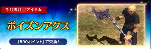 http://www.playonline.com/ff11/campaign/login/login120.html ポイント付与期間:6月13日(火)0:00頃 ~ 7月3日(月)23:00頃 おっとこれはまた懐かしい装備が!新アイテムとしてポイズンアクスがもらえるようです。FF11にポイズンアクスってなかったんで…