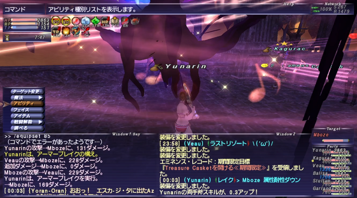 ①を事前にMbozeにやっておけば、そのあとお供をなぐっている状態でも②をうてばMbozeにWSを叩き込めます。当然ながら離れすぎてると当たりませんので注意。